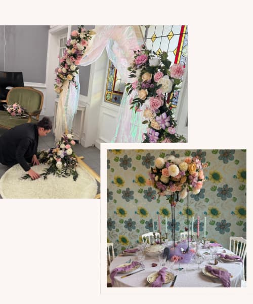Pour nous, créer un décor floral, c’est bien plus qu’assembler de jolies fleurs. Nous concevons une mise en scène unique où chaque élément compte : les volumes, l’harmonie des couleurs, les matières… Chaque détail est imaginé pour répondre à vos envies et donner une véritable personnalité à votre décor.