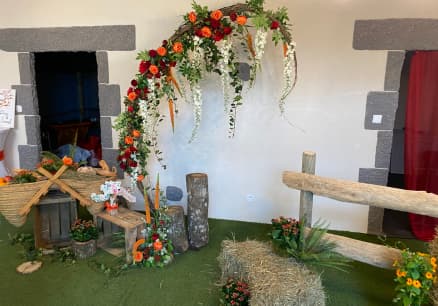 1 décor espace photos (fleurs en tissu et mobiliers en location)